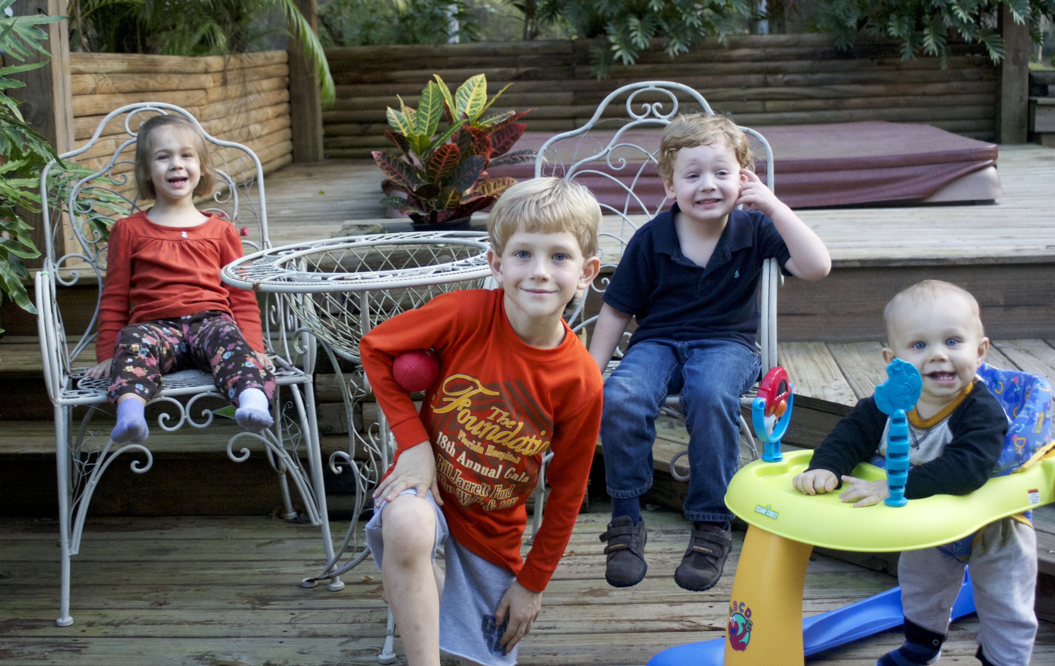 Lina was sleeping. Also, I am clearly not a professional photographer. Getting four kids to all look at the camera and smile at the same time is an accomplishment well beyond my skills. Actually, it’s just my kid who won’t look at the camera and smile.