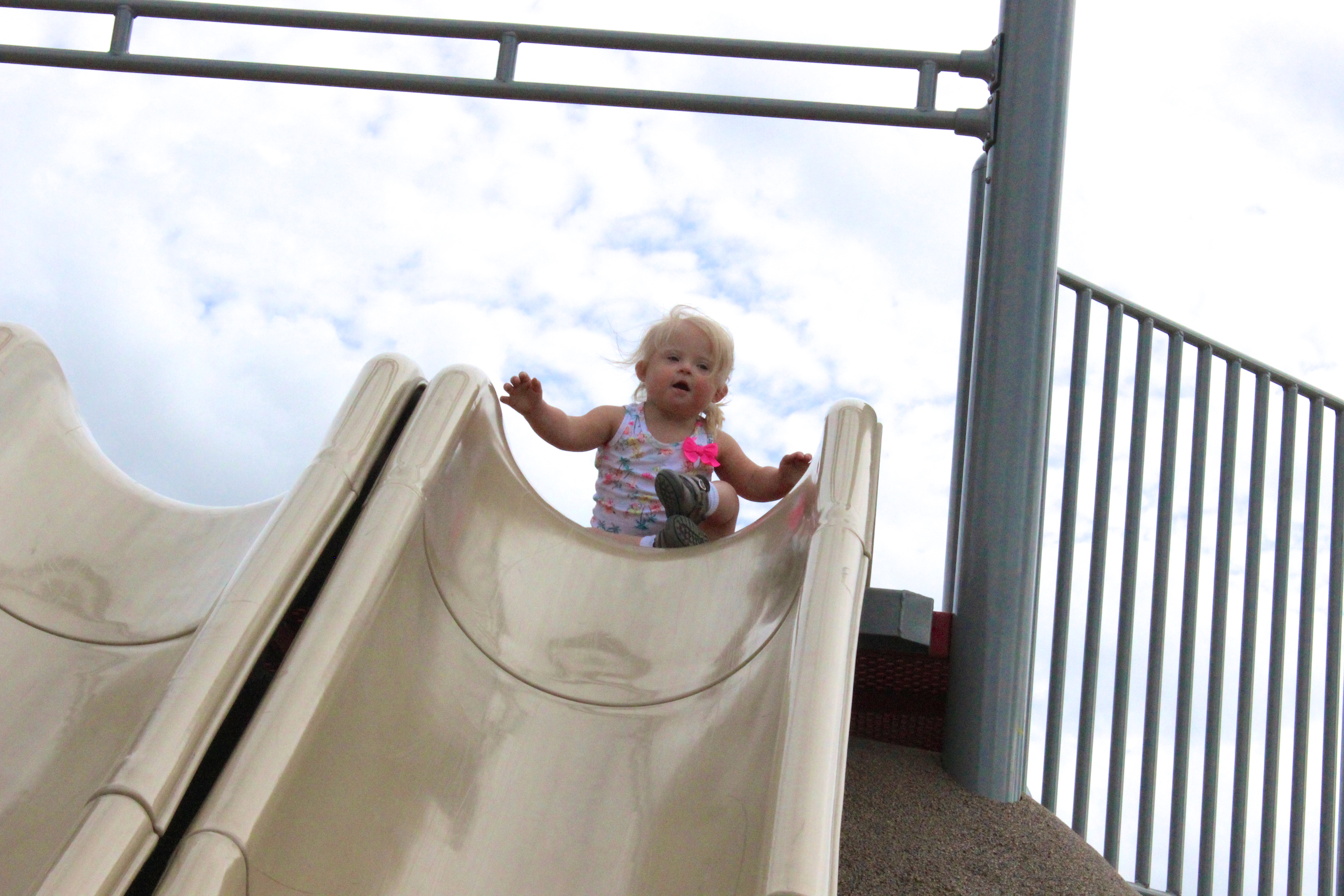 Girl was fearless heading down the big slides.