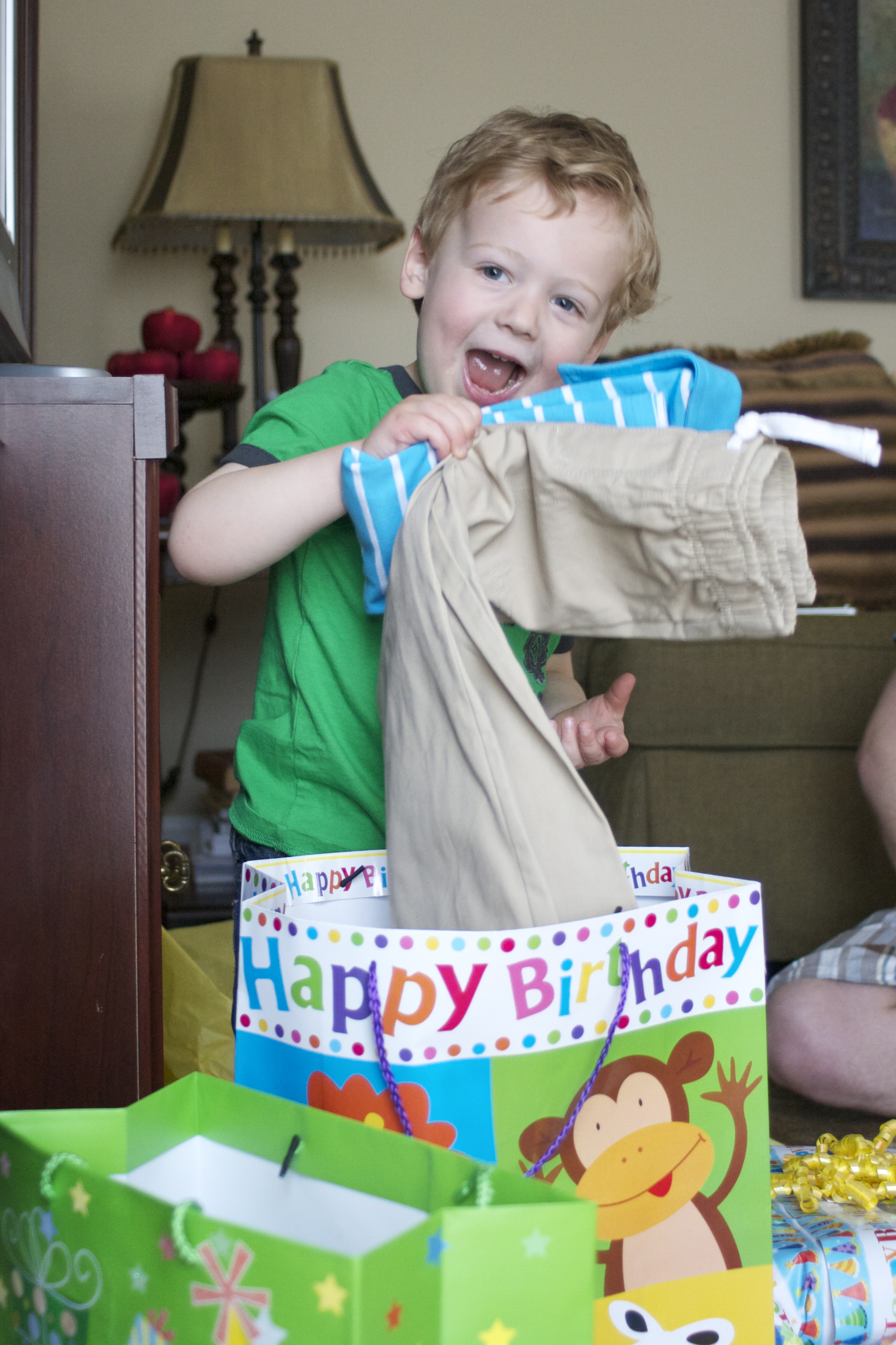 - Has grown into 6 – 9 or 6 – 12 month clothes and can wear either size 2 or 3 diapers